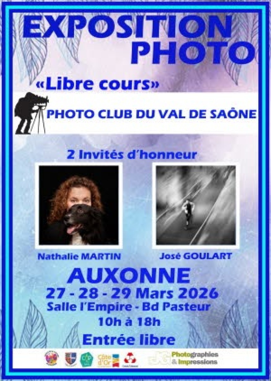 Le Photo Club du Val de Saône vous invite à son exposition « Libre cours », du vendredi 27 au dimanche 29 mars, de 10h à 18h, à la salle l'Empire d'Auxonne.