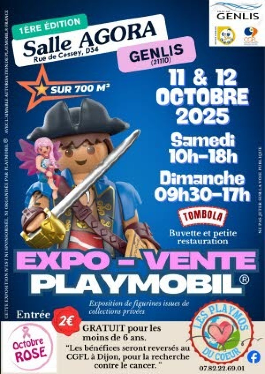 Plongez dans le monde magique de Playmobil ! Les Playmos du Cœur vous invitent à leur première exposition-vente les Samedi 11 octobre de 10h à 18h et dimanche 12 octobre de 9h30 à 17h à la Salle Agora de Genlis.