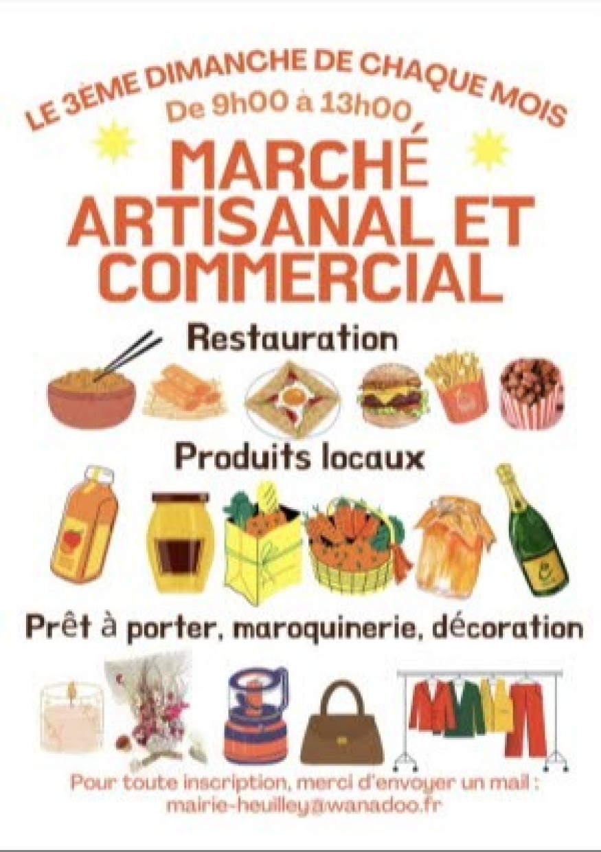 La commune d'Heuilley-sur-Saône vous donne rendez-vous pour son marché artisanal et commercial, un dimanche par mois, de 9h à 13h, place du Souvenir Français.