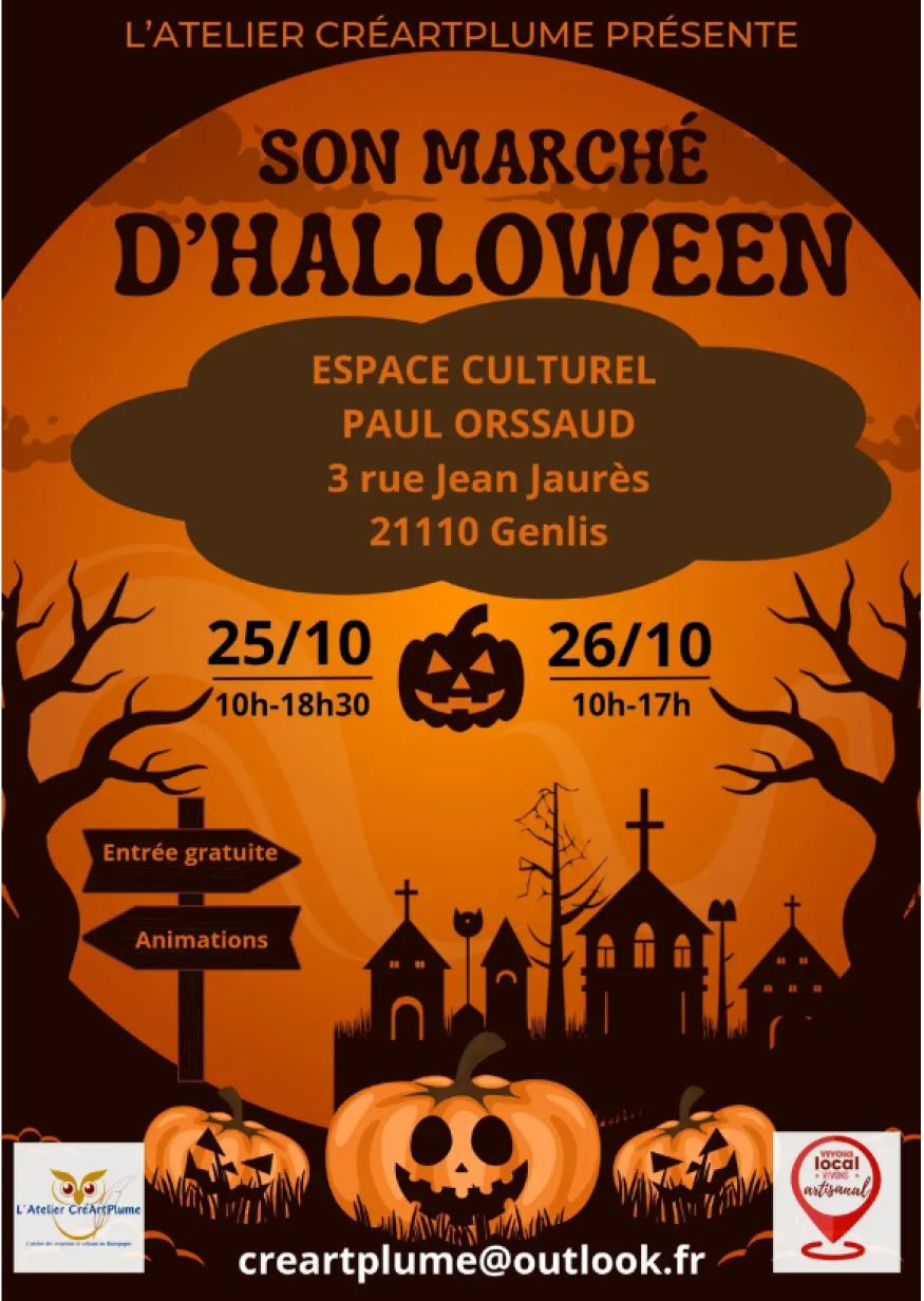 Sortez vos plus beaux déguisements ! Le marché artisanal d'Halloween vous attend à l'Odéon - Espace culturel Paul Orssaud de Genlis.