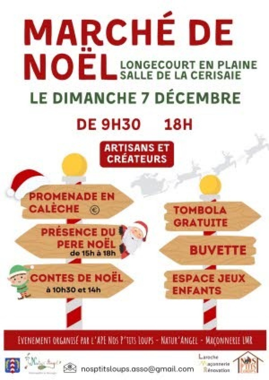 Découvrez la magie de Noël à Longecourt-en-Plaine ! L'association Nos P'tits Loups vous invite à son marché de Noël le dimanche 7 décembre, de 9h30 à 18h, salle de la Cerisaie.
