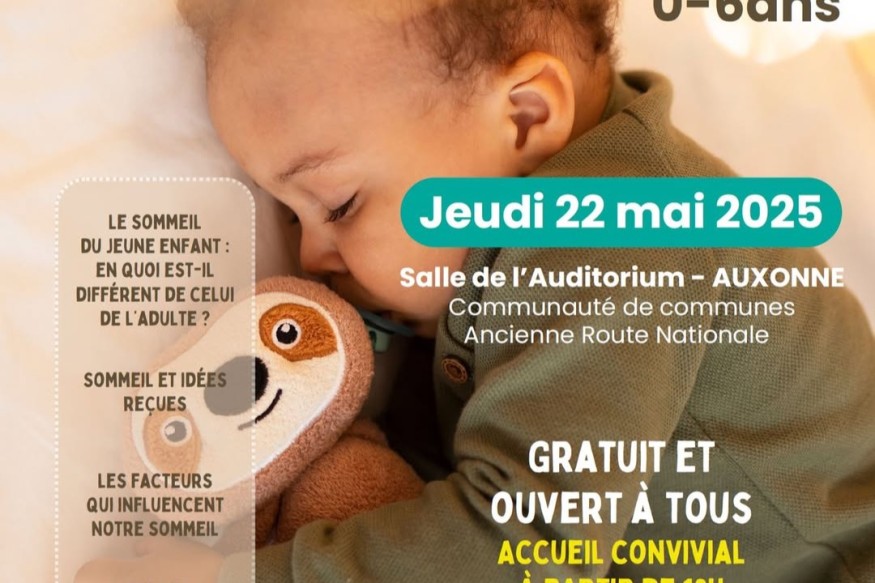 La Communauté de communes Auxonne-Pontailler Val de Saône organise une soirée dédiée au sommeil du jeune enfant, le jeudi 22 mai à 19h, dans la salle de l’auditorium à Auxonne.